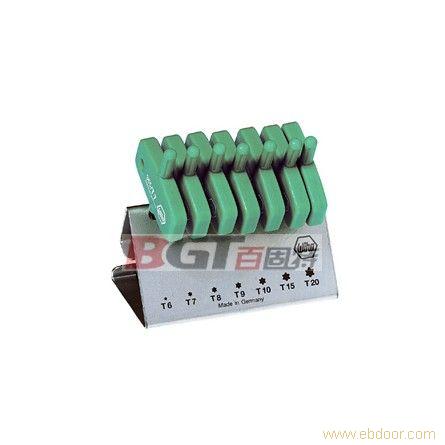 365 VB 匙型手柄TORX? 星形扳手7件装 带小支座起子杆:铬钒钢,经过热处理和发黑处理手柄:威汉匙型手柄应用:小力传递大扭力,特别是更换铣头上的转位式刀片时附带:稳定的钢支座可以立着或挂着,并印有起子头的符号和型号